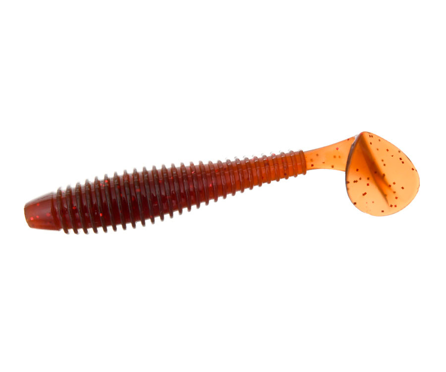 Серия Flagman Mystic Fish Fat отличается ребристым, округлым в сечении «упитанным» телом, которое переходит в сплющенный с боков хвостик. На нем расположена достаточно большая хвостовая пластина – «пятка». Частые ребра на теле служат дополнительным привлекающим элементом. С одной стороны они создают соблазнительные для хищника завихрения воды, а активную игру хвостика и турбулентность хищник чувствует с большого расстояния, с другой – многократно увеличивают площадь поверхности приманки, благодаря чему в окружающую среду попадает большее количество аттрактанта, которым пропитана приманка. Для удобства использования в спинке виброхвоста сделана специальная прорезь, куда идеально прячется жало офсетного крючка, что значительно повышает незацепляемость приманки.