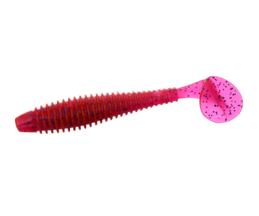 Серия Flagman Mystic Fish Fat отличается ребристым, округлым в сечении «упитанным» телом, которое переходит в сплющенный с боков хвостик. На нем расположена достаточно большая хвостовая пластина – «пятка». Частые ребра на теле служат дополнительным привлекающим элементом. С одной стороны они создают соблазнительные для хищника завихрения воды, а активную игру хвостика и турбулентность хищник чувствует с большого расстояния, с другой – многократно увеличивают площадь поверхности приманки, благодаря чему в окружающую среду попадает большее количество аттрактанта, которым пропитана приманка. Для удобства использования в спинке виброхвоста сделана специальная прорезь, куда идеально прячется жало офсетного крючка, что значительно повышает незацепляемость приманки.