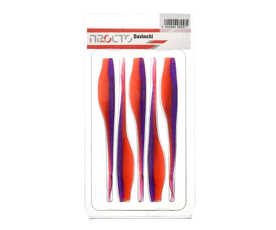 «Просто снасті» Davinchi 4.5" – типичный слаг с сильно вытянутым и сплющенным по бокам телом. На кончике длинного хвоста расположены два тонких усика, которые призваны увеличить подвижность приманки во время анимации. Собственной игры слаг Davinchi не имеет, так как полностью лишён активных элементов. Сверху и снизу тела имеются углубления для оптимизации использования приманки в оснастках с офсетным крючком. Это идеальная приманка для оснастки дроп-шот. Также ее с успехом используют в других оснастках, как шарнирных, так и разнесённых. Все приманки «Просто снасті» Davinchi изготовлены из мягкого эластичного пластика в наиболее популярных расцветках. Davinchi – востребованная приманка у любителей ловли судака и щуки, с очень привлекательным соотношением цена/качество.