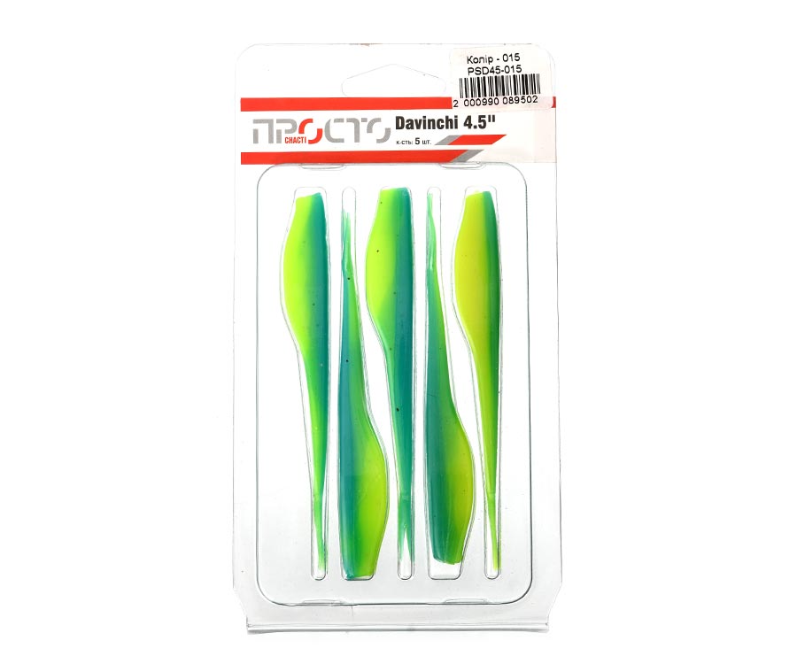 «Просто снасті» Davinchi 4.5" – типичный слаг с сильно вытянутым и сплющенным по бокам телом. На кончике длинного хвоста расположены два тонких усика, которые призваны увеличить подвижность приманки во время анимации. Собственной игры слаг Davinchi не имеет, так как полностью лишён активных элементов. Сверху и снизу тела имеются углубления для оптимизации использования приманки в оснастках с офсетным крючком. Это идеальная приманка для оснастки дроп-шот. Также ее с успехом используют в других оснастках, как шарнирных, так и разнесённых. Все приманки «Просто снасті» Davinchi изготовлены из мягкого эластичного пластика в наиболее популярных расцветках. Davinchi – востребованная приманка у любителей ловли судака и щуки, с очень привлекательным соотношением цена/качество.