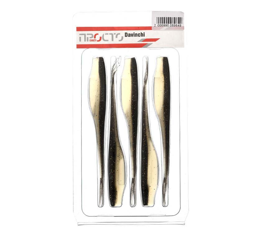 «Просто снасті» Davinchi 4.5" – типичный слаг с сильно вытянутым и сплющенным по бокам телом. На кончике длинного хвоста расположены два тонких усика, которые призваны увеличить подвижность приманки во время анимации. Собственной игры слаг Davinchi не имеет, так как полностью лишён активных элементов. Сверху и снизу тела имеются углубления для оптимизации использования приманки в оснастках с офсетным крючком. Это идеальная приманка для оснастки дроп-шот. Также ее с успехом используют в других оснастках, как шарнирных, так и разнесённых. Все приманки «Просто снасті» Davinchi изготовлены из мягкого эластичного пластика в наиболее популярных расцветках. Davinchi – востребованная приманка у любителей ловли судака и щуки, с очень привлекательным соотношением цена/качество.
