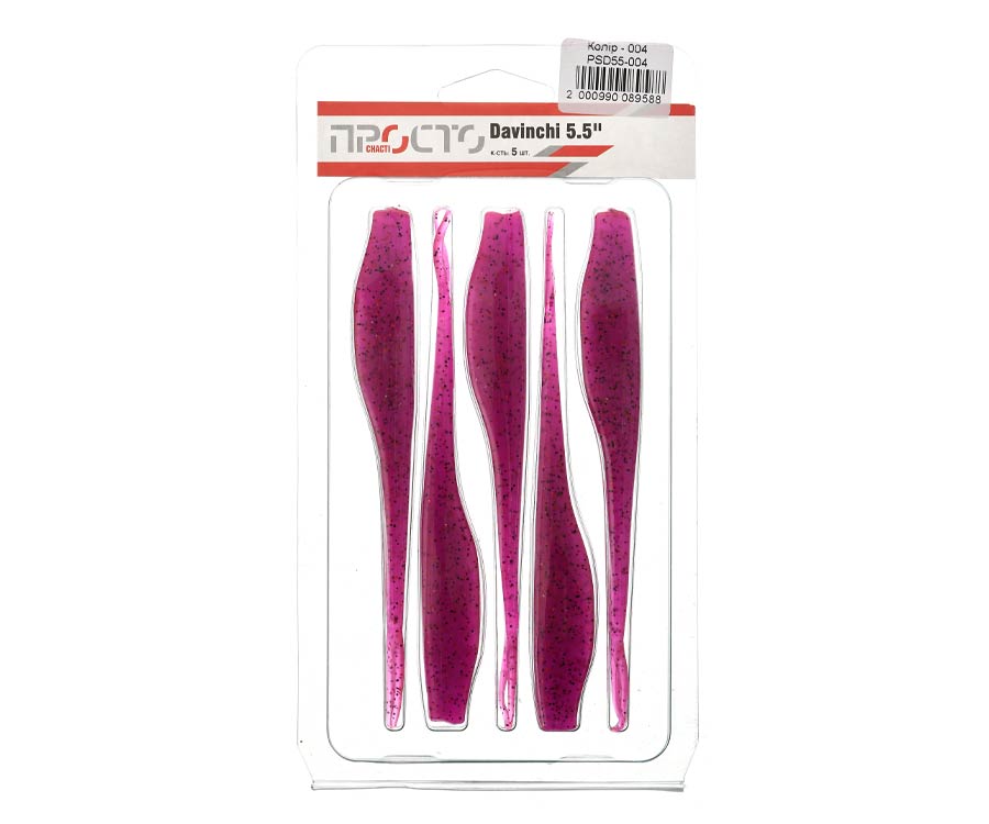«Просто снасті» Davinchi 5.5" – типичный слаг с сильно вытянутым и сплющенным по бокам телом. На кончике длинного хвоста расположены два тонких усика, которые призваны увеличить подвижность приманки во время анимации. Собственной игры слаг Davinchi не имеет, так как полностью лишён активных элементов. Сверху и снизу тела имеются углубления для оптимизации использования приманки в оснастках с офсетным крючком. Это идеальная приманка для оснастки дроп-шот. Также ее с успехом используют в других оснастках, как шарнирных, так и разнесённых. Все приманки «Просто снасті» Davinchi изготовлены из мягкого эластичного пластика в наиболее популярных расцветках. Davinchi – востребованная приманка у любителей ловли крупного судака и щуки, с очень привлекательным соотношением цена/качество.