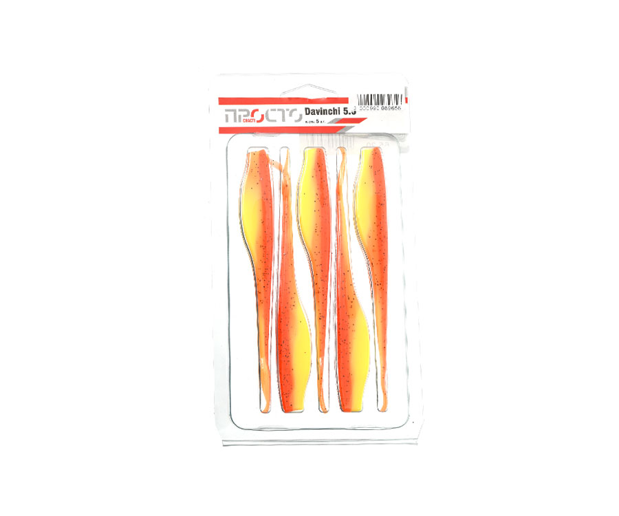 «Просто снасті» Davinchi 5.5" – типичный слаг с сильно вытянутым и сплющенным по бокам телом. На кончике длинного хвоста расположены два тонких усика, которые призваны увеличить подвижность приманки во время анимации. Собственной игры слаг Davinchi не имеет, так как полностью лишён активных элементов. Сверху и снизу тела имеются углубления для оптимизации использования приманки в оснастках с офсетным крючком. Это идеальная приманка для оснастки дроп-шот. Также ее с успехом используют в других оснастках, как шарнирных, так и разнесённых. Все приманки «Просто снасті» Davinchi изготовлены из мягкого эластичного пластика в наиболее популярных расцветках. Davinchi – востребованная приманка у любителей ловли крупного судака и щуки, с очень привлекательным соотношением цена/качество.