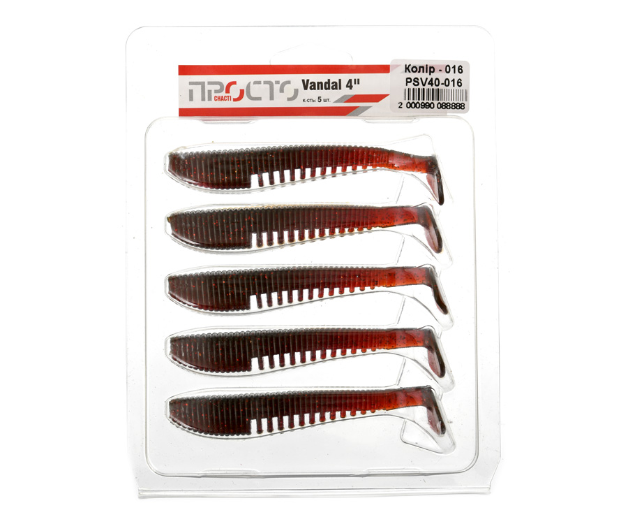 Виброхвост «Просто снасті» Vandal 4" – мягкая пластиковая приманка длиной 10 см, обладающая среднечастотной активной игрой. Движения хвостового пятака довольно размашисты. Играть Vandal начинает на самой медленной проводке. Активность игры обеспечивается тонким хвостовым стеблем, на который посажен пятак, а боковые ребрышки обогащают игру приманки, придавая ей полную реалистичность. Привлекательный вид и своеобразная игра виброхвоста Vandal способны вывести из сонного оцепенения даже самого пассивного хищника. Приманки изготовлены из мягкого эластичного пластика в наиболее популярных расцветках. Использовать эти виброхвосты можно как на стандартных джиг-головках, так и на шарнирных и разнесенных монтажах с применением офсетного крючка. «Просто снасти» Vandal – популярная приманка у любителей ловли крупной щуки и судака, с очень привлекательным соотношением цена/качество.