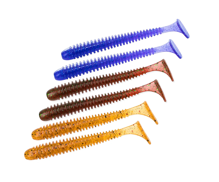 Материал приманки очень мягкий поэтому хвост заводится на малейшей скорости и весе грузов от 1г. Соль в нижней части приманки стабилизирует ее на проводке и держит тело приманки в правильном положении в воде.