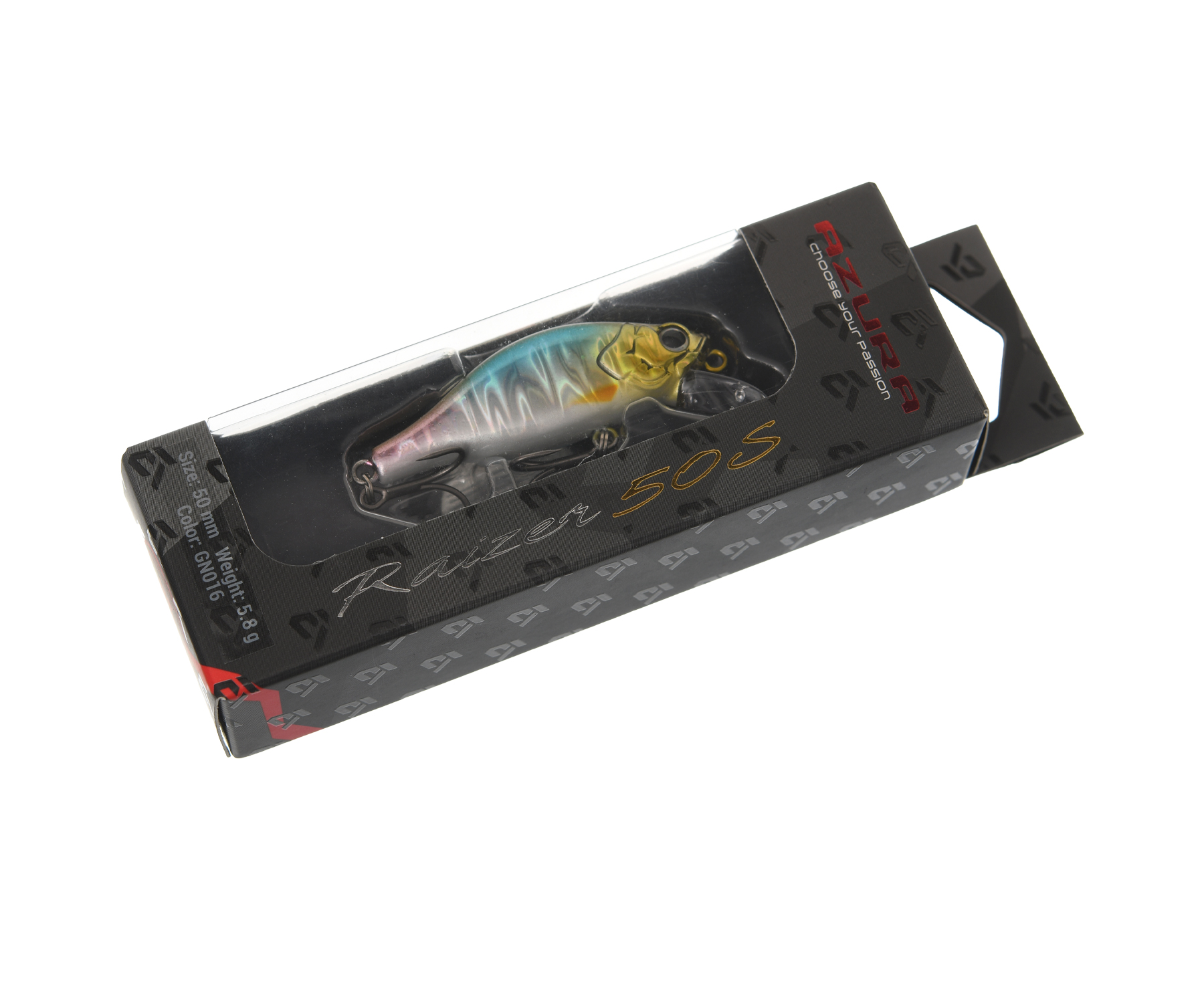 Довольно высокое тело геометрии shad сразу же выгодно выделяет Azura Raizer Shad среди львиной части других приманок. Но действительно нетипичным для представителей данного класса приманок является то, что он тонущий. Именно эта способность воблера Azura Raizer Shad позволяет качественно прорабатывать различные слои воды в поиске хищников. Приманка прекрасно держит течение и позволяет беспрепятственно ловить в довольно сложных условиях. Отдельного внимания заслуживают и полётные качества воблера: в случае с Azura Raizer Shad все происходит контролируемо, точно и прогнозируемо. Приманка доступна в трех вариантах размеров: 40S, 45S, 50S.