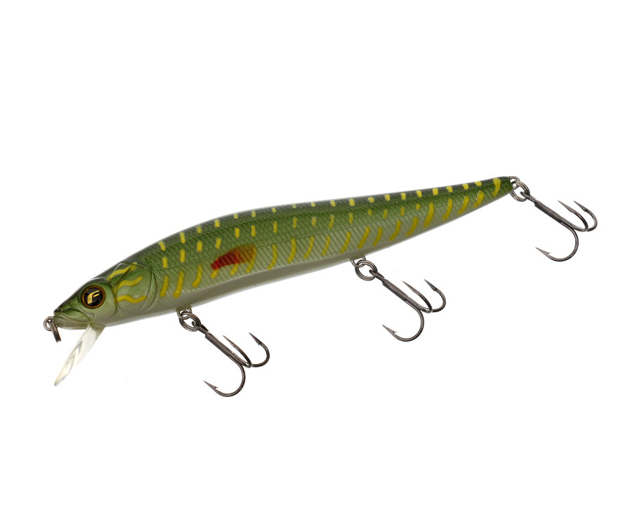 Отличная приманка для быстрого и эффективного облова обширных мелководий. Это воблер minnow вытянутой формы, весит он 22,5 г и имеет длину 130 мм. Благодаря системе дальнего заброса летит не только далеко, но и очень точно. Подвижные стальные шарики при забросе уходят далеко в хвост и сильно смещают туда центр тяжести. При первом же рывке они возвращаются на место и фиксируются специальным приливом снизу, благодаря чему при проводке балансировка остается неизменной. Шарики издают относительно негромкий звук высокой частоты. Воблер обладает собственной игрой, но равномерная проводка не выступает основной, его специализация – твичинг. При рывках Bossy совершает длинные «заплывы» по инерции, имеющие сложную траекторию. Причем, он сразу резко отклоняется в сторону, и амплитуда его движений получается очень большой. Bossy – суспендер, после остановки движения он зависает в толще воды. Длительные паузы нередко провоцируют на атаку щуку и крупного окуня. Лобовое сопротивление воблера не слишком велико, поэтому для рывковой проводки нет необходимости использовать сверхжесткие удилища.