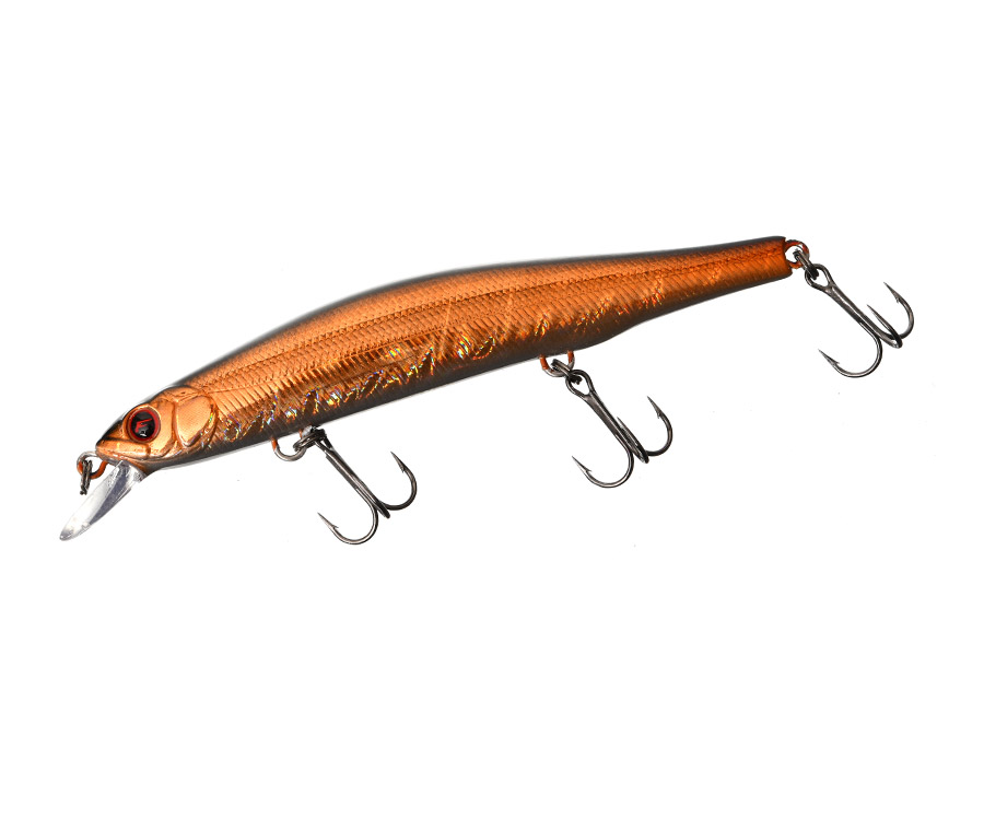 Flagman Joker 110SP – один из классических воблеров минноу, созданных специально для рывковой проводки. Эта шумящая и очень звонкая приманка изготовлена из высококачественного пластика, имеет прочную многослойную окраску, оснащена острейшими крючками VMC и усиленными заводными кольцами. Воблер Flagman Joker 110SP оборудован магнитной системой дальнего заброса и балансировки. Он обладает нейтральной плавучестью (суспендер), что позволяет долго удерживать его в самых привлекательных точках проводки. Имеет слабовыраженную малоактивную собственную игру, поэтому использовать равномерную проводку целесообразно лишь против течения или при высокой скорости подмотки. На рывковой проводке, для которой воблер и предназначен, он раскрывается полностью: делает длинные уходы в стороны по дугообразной траектории, а после остановки продолжает некоторое время покачивать боками, демонстрируя затухающий роллинг. Flagman Joker 110 – настоящий универсал, способный прекрасно работать на любом темпе рывковой проводки. Он показывает безупречные результаты как на агрессивной ударной проводке, так и на мягком затухающем твичинге. Ряд моделей покрыты 3D фольгой («битое стекло»), а также уникальной краской, которая светится в ультрафиолете, отчего воблер буквально сияет всем телом в толще воды, привлекая хищника с больших расстояний. Приманки Joker 110SP, в первую очередь, заинтересуют любителей ловли щуки. Впрочем, и охотники на судака по достоинству оценят возможности этих уникальных воблеров.