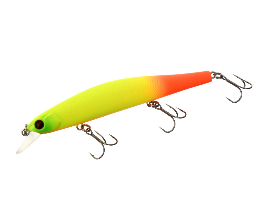 Flagman Joker 125 SP – классический воблер геометрии минноу, созданный специально для рывковой проводки. Приманка обладает слабовыраженной собственной игрой, поэтому использовать равномерную проводку целесообразно лишь против течения. При рывковой проводке, для которой воблер и предназначен, он раскрывается полностью: делает длинные уходы в стороны по дугообразной траектории, а после остановки продолжает некоторое время покачивать боками (rolling action). Flagman Joker 125SP – настоящий универсал, способный прекрасно работать на любом темпе рывковой проводки. Показывает безупречные результаты как на агрессивной ударной проводке, так и на мягком, затухающем твичинге. Воблер шумовой и очень звонкий. Оборудован магнитной системой дальнего заброса. Обладает нейтральной плавучестью (суспендер), что позволяет долго удерживать его в самых привлекательных горизонтах проводки. Комплектуется надежной фурнитурой, острыми и легкими тройниками VMC.