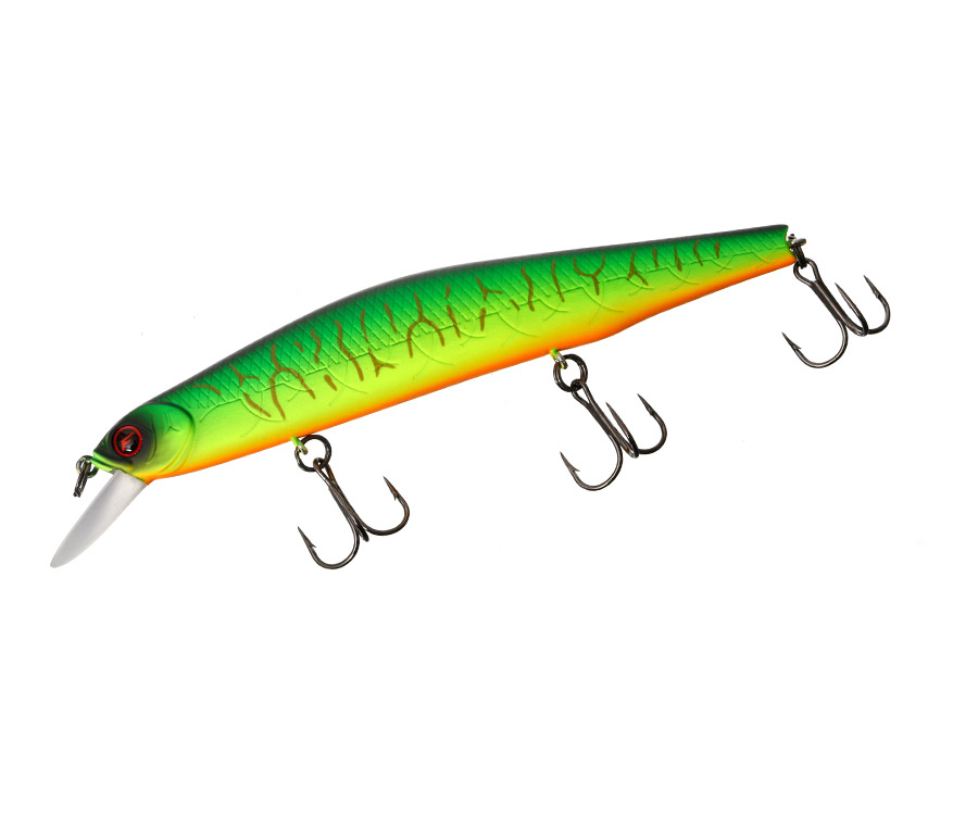 Flagman Joker 135SF – классический воблер геометрии минноу, созданный специально для рывковой проводки. Этот шумящий и очень звонкий воблер изготовлен из высококачественного пластика, имеет прочную многослойную окраску, оснащён острейшими крючками VMC и усиленными заводными кольцами. Flagman Joker 135 SF оборудован магнитной системой дальнего заброса и балансировки, которая удерживает воблер в стабильном положении на любой скорости ведения приманки. Обладает небольшой положительной плавучестью, что, с одной стороны, позволяет обходить подводные препятствия, с другой – легко удерживать воблер в самых привлекательных горизонтах проводки. Имеет слабовыраженную малоактивную собственную игру, поэтому использовать равномерную проводку целесообразно лишь против течения или при высокой скорости подмотки. На рывковой проводке, для которой воблер и предназначен, он раскрывается полностью: делает длинные уходы в стороны по дугообразной траектории, а после остановки продолжает некоторое время покачивать боками, демонстрируя затухающий роллинг. Воблер Flagman Joker 135 – настоящий универсал, способный прекрасно работать на любом темпе рывковой проводки. Он показывает безупречные результаты как на агрессивной ударной проводке, так и на мягком затухающем твичинге. Ряд моделей Joker покрыты 3D фольгой («битое стекло»), а также уникальной краской, которая светится в ультрафиолете, отчего воблер буквально сияет всем телом в толще воды, привлекая хищника с больших расстояний. Данные приманки пользуются заслуженным успехом у охотников на крупную и трофейную щуку.