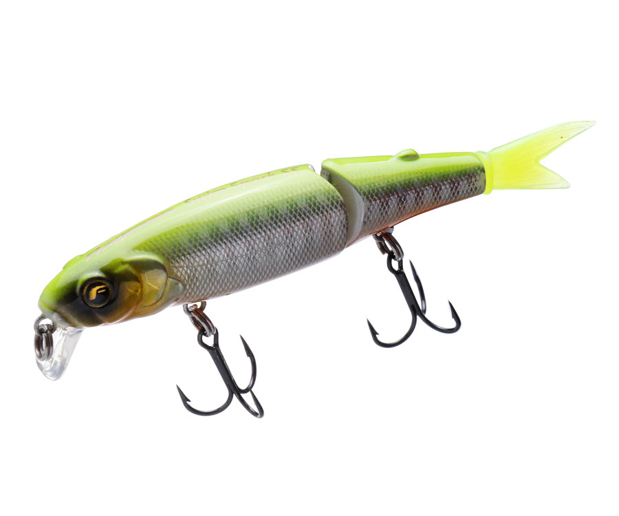 Оригинальный составной воблер, оборудованный хвостовым плавником из мягкого пластика. Конструкция соединения ограничивает свободу движения частей, что не сказывается негативно на работе воблера, но при этом снижает риск захлестов, как во время проводки, так и при забросе. Этот воблер – прекрасный выбор для ловли малоактивной щуки, не реагирующей на мощные рывки, прежде всего, в стоячих и слабопроточных водоемах. Он рассчитан на очень аккуратные, слабые рывки, во время которых уходит в стороны далеко, но на небольшой скорости. Воблер не останавливается в воде как вкопанный, его движения затухают плавно, что провоцирует на атаку даже самую вялую хищницу. Приманка снабжена шумовой капсулой, которая является дополнительным привлекающим фактором.
