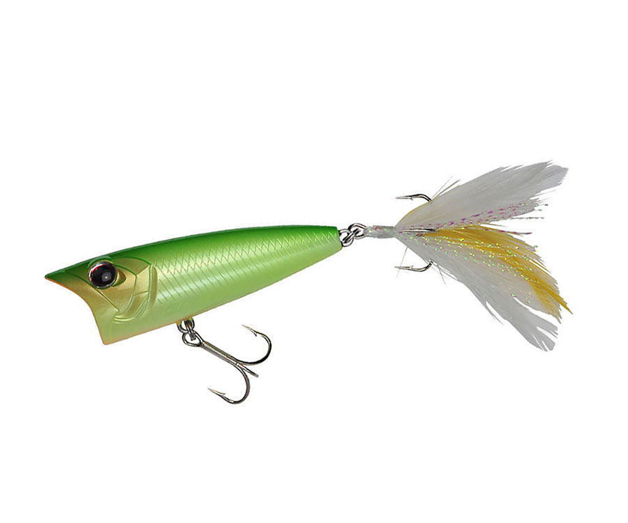 При проводке воблером создается множество пузырьков, а поппером демонстрируются волкерные движения. Приманка меняет свое поведение в зависимости от основной выбранной лески. Например, при выборе лески или шнура воблер занимает положение под углом 45 градусов, а при использовании в роли основной нити флюорокарбона — она занимает горизонтальное положение, а во время рывка создает брызги.