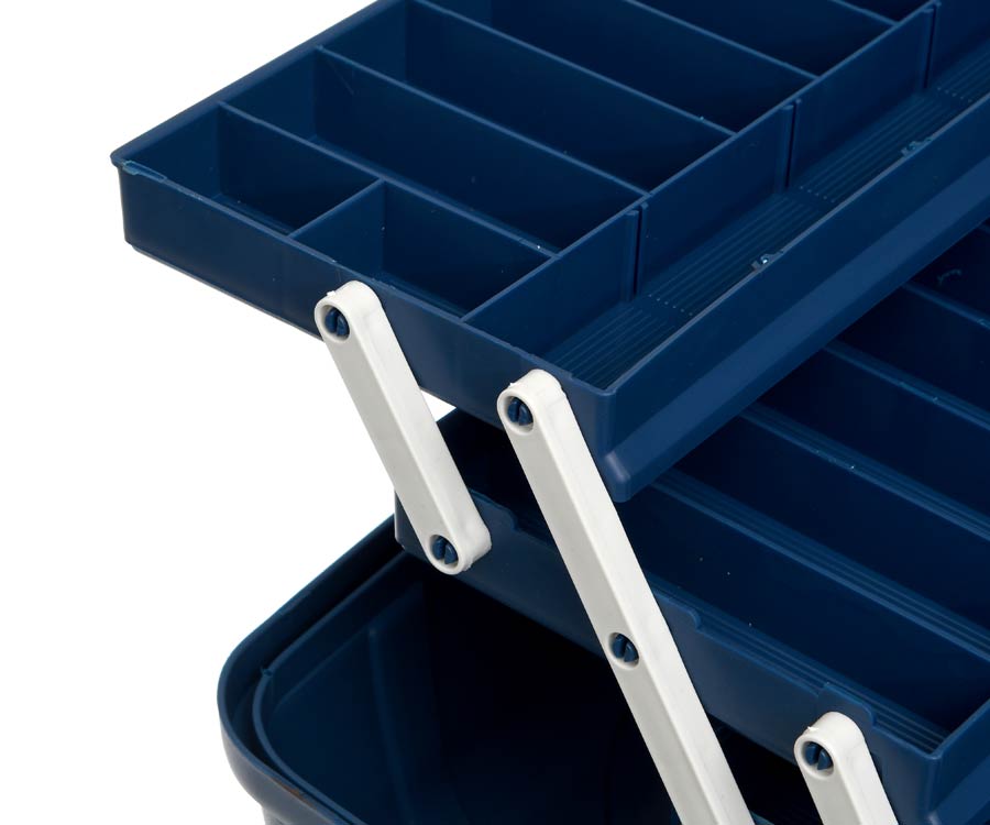 Flagman Tackle Box #27 – вместительный рыболовный ящик, изготовленный из ударопрочного пластика. Конструкция Tackle Box #27 предусматривает три раскладные полки. Система поддерживающих полки реек обеспечивает прочность конструкции и плотное прилегание полок друг к другу, исключая выпадение содержимого из ячеек во время транспортировки. Концепция фиксированных и съёмных перегородок позволяет оптимально формировать рабочее пространство кейса по своему усмотрению. Основное отделение ящика не имеет перегородок и предназначено для хранения крупных предметов. Рыболовный ящик Flagman Tackle Box #27 отлично подойдёт для хранения и транспортировки снастей, приманок самых разных типов и размеров, а также элементов оснасток и прочих аксессуаров. Имеет удобную складную ручку для переноски. Крышка оборудована надёжными шарнирами и защёлкой.