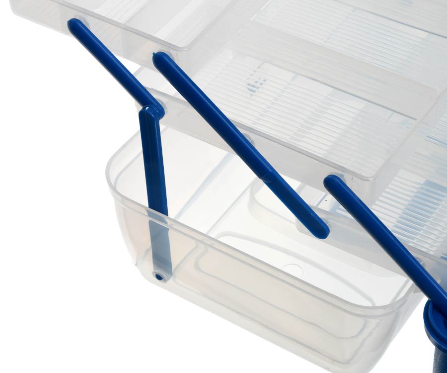 Flagman Tackle Box #30 – вместительный рыболовный ящик с прозрачной крышкой, изготовленный из ударопрочного пластика. Конструкция Tackle Box #30 предусматривает три раскладные полки. Система поддерживающих полки реек обеспечивает прочность конструкции и плотное прилегание полок друг к другу, исключая выпадение содержимого из ячеек во время транспортировки. Концепция фиксированных и съёмных перегородок позволяет оптимально формировать рабочее пространство кейса по своему усмотрению. Основное отделение ящика не имеет перегородок и предназначено для хранения крупных предметов. Рыболовный ящик Flagman Tackle Box #30 отлично подойдёт для хранения и транспортировки снастей, приманок самых разных типов и размеров, а также элементов оснасток и прочих аксессуаров. Имеет удобную складную ручку для переноски. Крышка оборудована надёжными шарнирами и защёлкой.