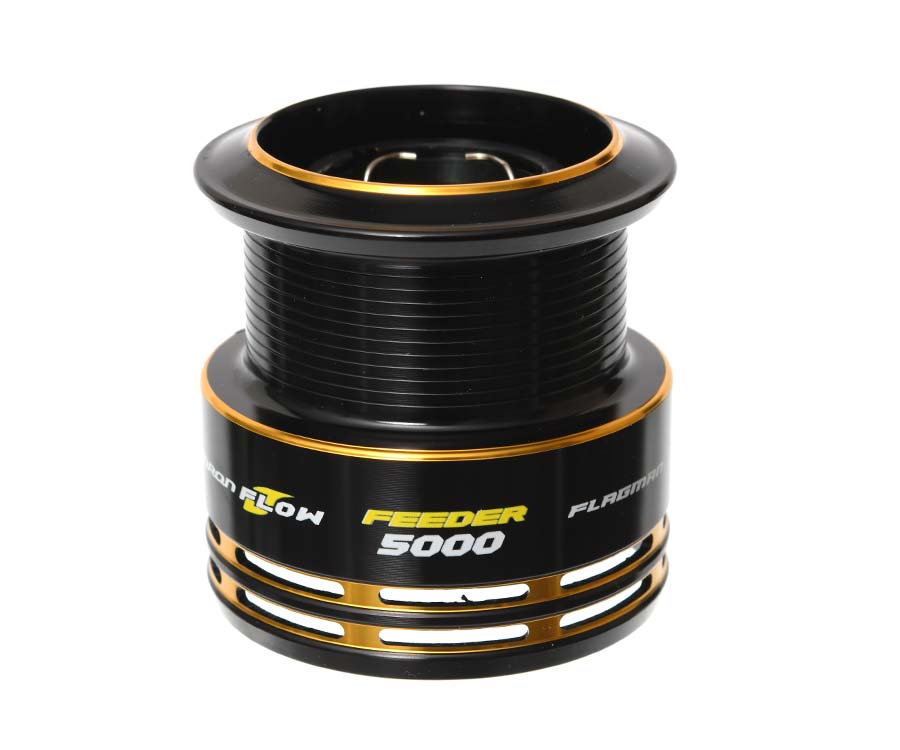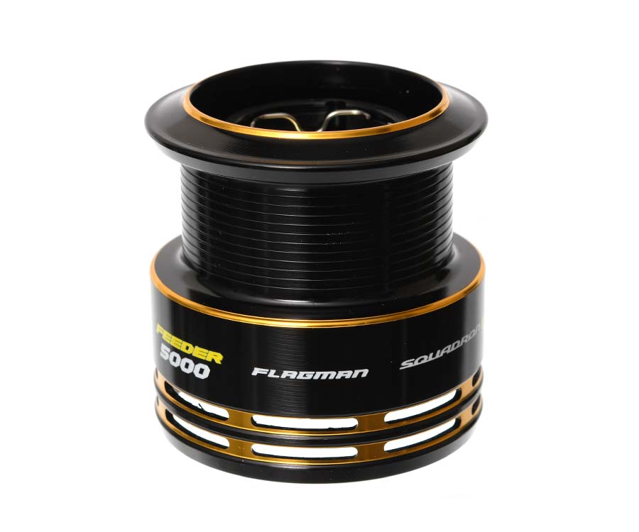 Запасная алюминиевая шпуля для фидерной катушки Flagman Squadron Flow Feeder 5000 New, идентичная штатной. Вместимость: 185 м лески 0,2 мм.