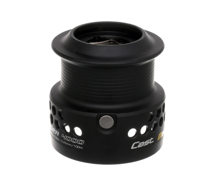 Запасная шпуля для катушки Flagman Cast Master Feeder 4000, аналогична штатной шпуле. Эта алюминиевая шпуля геометрии Long Cast обладает большой площадью намотки, что положительно сказывается на дальности заброса. Клипса выполнена из металла. Ее скругленные края не повреждают леску или шнур, что очень важно для фидерной ловли. Ролик лесоукладывателя со сверхтвердым напылением имеет форму, препятствующую перекручиванию лески.