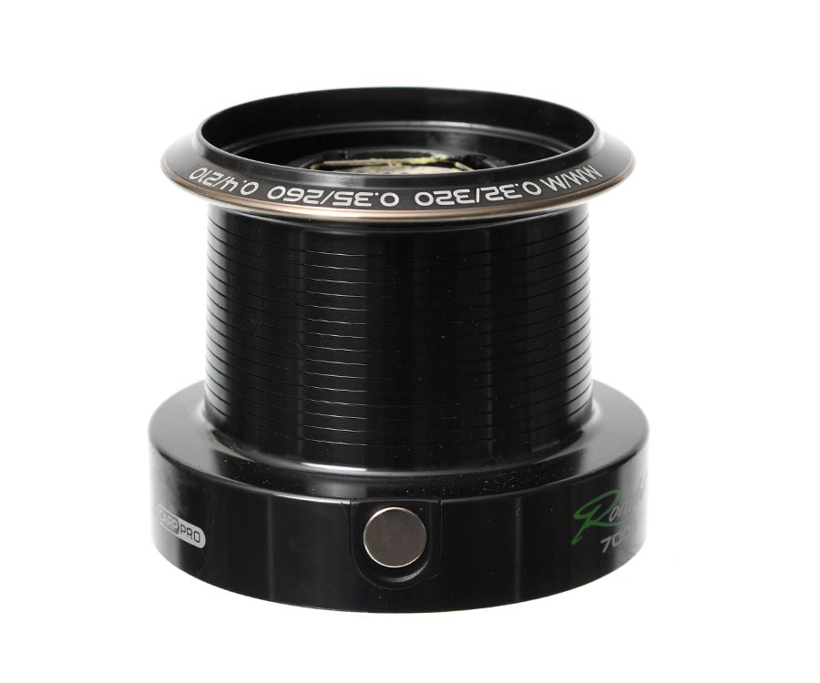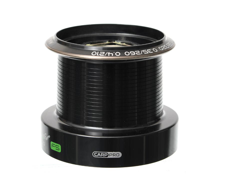 Запасная алюминиевая шпуля для катушки Carp Pro Rondel 7000 FS, идентичная штатной. Вместимость: 260 м лески 0,35 мм.