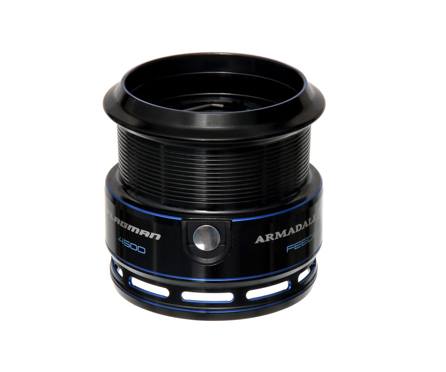 Запасная металлическая шпуля к фидерной катушке Armadale Pro Feeder Reel 4500. Эта низкопрофильная алюминиевая шпуля оснащена двумя круглыми металлическими клипсами. Шпуля имеет конический буртик, который значительно уменьшает трение и повышает дальность заброса.