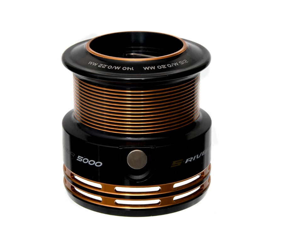 Запасная алюминиевая шпуля для фидерной катушки Flagman S-River Feeder 5000. Емкость этой низкопрофильной шпули оптимизирована для работы с тонкими лесками и шнурами. Шпуля оснащена круглой металлической клипсой. Вмещает 215 метров лески диаметром 0,2 мм. Имеет конический буртик, который значительно уменьшает трение и повышает дальность заброса. Выполнена в золотом цвете, который удачно сочетается с дизайном катушек Flagman S-River Feeder. Шпуля также подойдет для катушек Flagman S-Power Feeder 5000.