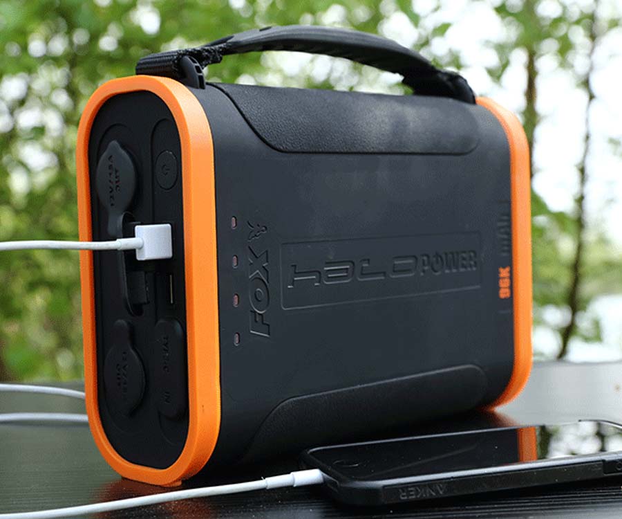 FOX Halo 96K Power Pack — отличный источник электричества для зарядки различных электронных устройств на берегу водоема с встроенным фонарем.