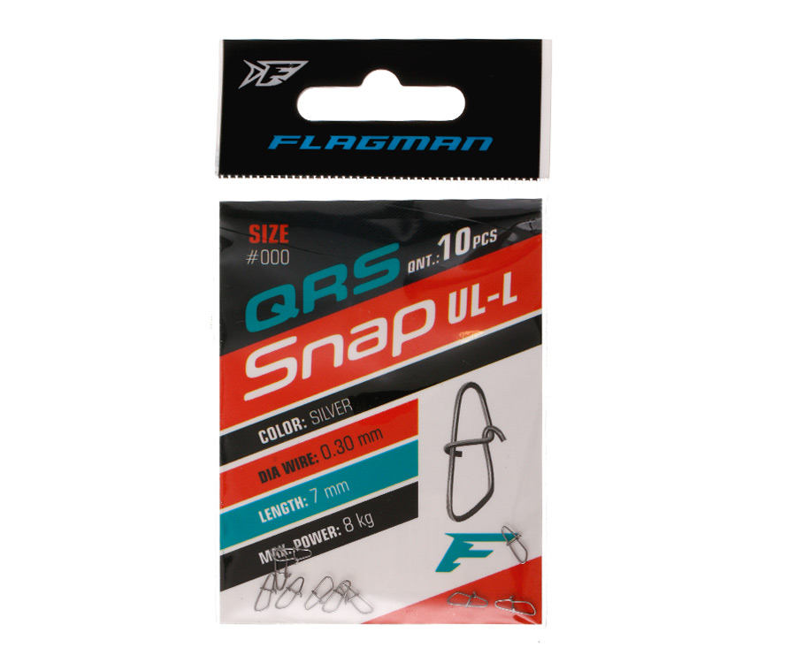 Flagman Quick RS Snap — миниатюрная, ультралегкая застежка-американка, изготовленная из тонкой и высокопрочной проволоки. С ее помощью за считанные секунды можно сделать надежный монтаж основной и поводковой снасти. Разрывная нагрузка — 8 кг. Цвет — silver (серебро). В упаковке 10 шт.