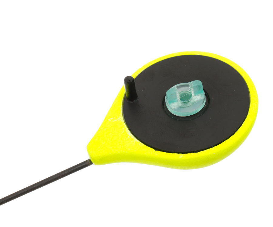Усовершенствованная версия популярной удочки под названием «Балалайка». Хлыстик выполнен из стеклопластика, благодаря чему жестче обычных капроновых при меньшей толщине. Корпус выточен из очень твердого пенополистирола и покрыт флуоресцентной краской. Под шпулей и под гайкой предусмотрены прокладки, что снижает трение при вращении и снижает вероятность самораскручивания и самозакручивания гайки. В отверстие для выхода лески вставлен кембрик. На хлыстике предусмотрено «пропускное кольцо» из изоляции, также на самую вершину надет кембрик – для установки кивков с большим посадочным диаметром. Корпус имеет скругленную, обтекаемую форму, что в сочетании с малым весом позволяет безбоязненно подтягивать удочку к себе за тонкую леску. Она при этом не застрянет в снегу и не зацепится за осколки льда.