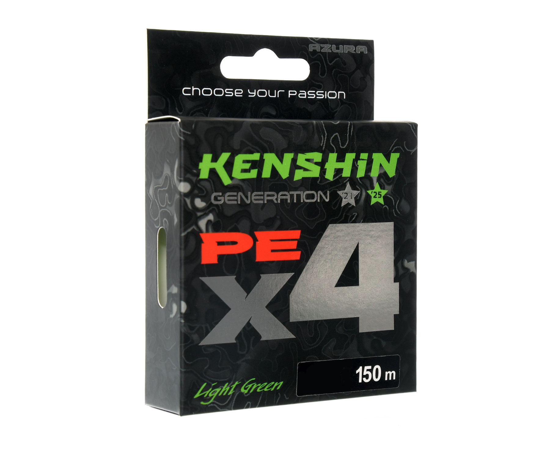 Azura '25 Kenshin X4 – нова генерація серії високоякісних чотирижильних шнурів для широкого кола риболовів. Нову лінійку шнурів Azura Kenshin X4 виготовлено з принципово нового і більш сучасного матеріалу зі спеціальним покриттям, що дало змогу зробити їх ще міцнішими, тоншими, більш округлими та достатньо гладкими. Завдяки таким інноваціям збільшилася кількість та розмірна сітка моделей і Kenshin X4 тепер доступний починаючи з #0.2 (0,074 мм) і закінчуючи #1.5 (0,205 мм). Новий шнур має практично нульову розтяжність, забезпечує високу чутливість і максимально далеке закидання приманок. Крім того спеціальне покриття, що робить його стійким до механічних пошкоджень, запобігає всмоктуванню води та потраплянню абразивних частинок бруду поміж волокон. Відмінною рисою шнура також є точна відповідність реальних розривних навантажень заявленим та дуже привабливе співвідношення ціна/якість. Кількість доступних діаметрів дозволяє підібрати оптимальний шнур практично для будь-яких умов риболовлі.