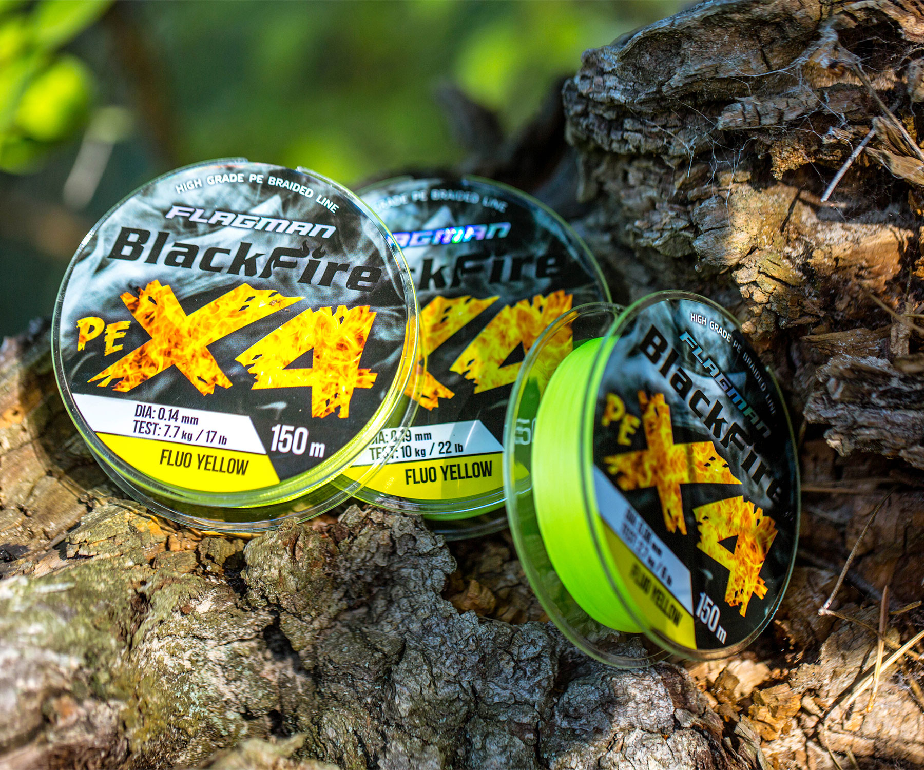 Flagman Blackfire PE X-4 – якісний гібридний шнур, який виготовлено за технологією чотирижильного плетіння – дві жили з високомолекулярного поліетилену, дві – з поліестеру, що надає шнуру високу абразивну стійкість. Шнур Flagman Blackfire PE X-4 має дуже щільну структуру плетіння, завдяки чому зважені у воді абразивні частинки не потрапляють між волокон і не зношують кільця вудлища. Він характеризується мінімальною пам'яттю і практично нульовою розтяжністю, що забезпечує максимальну чутливість снасті. Шнур Blackfire PE X-4 вирізняється високою міцністю, зокрема й на вузлах, довговічністю, добрими кастинговими характеристиками і водночас доступний за ціною широкому колу риболовів. Цей універсальний шнур чудово підійде для різноманітних стилів і способів риболовлі, а його яскравий флюоресцентно-жовтий колір робить Flagman Blackfire PE X-4 добре помітним для риболова навіть за умови недостатньої видимості та слабкого освітлення. Виготовляється в широкому спектрі діаметрів та розмотуванні 150 м.