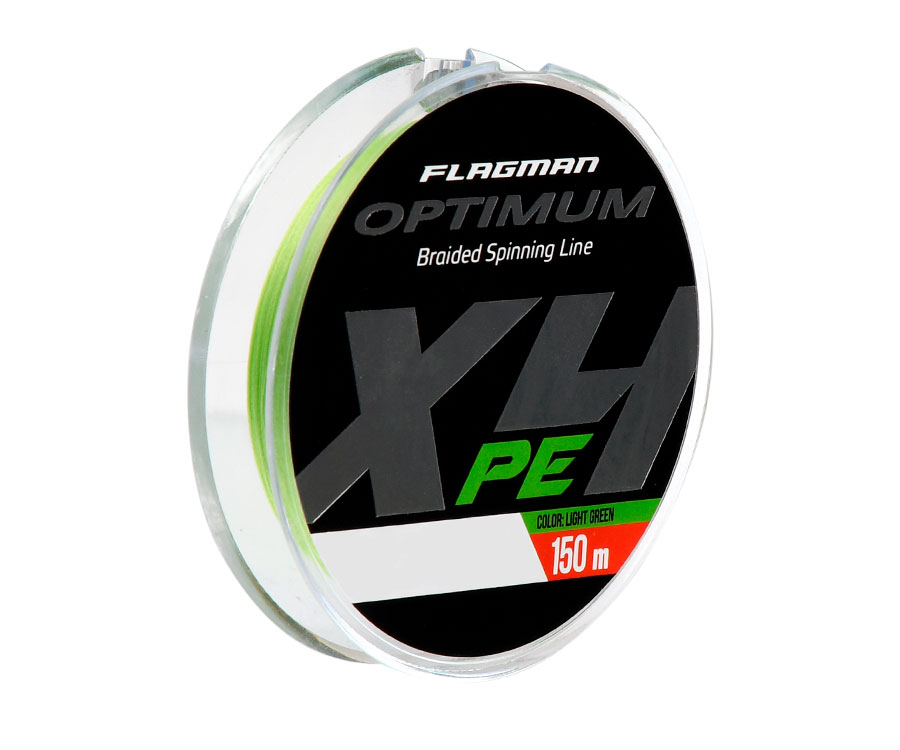 Flagman Flagman Optimum PE X4 – якісний PE-шнур нового покоління, який виготовлено за гібридною технологією чотирижильного плетіння. Має високу абразивну стійкість і довговічність. Спеціальна обробка покращує кастингові характеристики шнура та його стійкість до абразиву, а особлива технологія забезпечує шнуру Flagman Optimum PE X4 високу щільність плетіння, жорсткість і мінімальну розтяжність, що ідеальним чином підвищує чутливість снасті. Дуже щільна структура плетіння не дає змоги абразивним часточкам і бруду накопичуватися між волокон і зношувати ролик жилковкладача та кільця вудлища. Світло-зелене забарвлення Optimum PE X4 Light Green чудово маскує шнур у товщі води та не відлякую обережну рибу. Шнури серії Flagman Optimum PE X4 підійдуть не тільки для спінінгової, а і для інших способів ловлі. Маючи відмінні робочі характеристики, вони максимально доступні для широкого кола риболовів. Виробляються в найбільш затребуваних діаметрах і розмотуванні 150 м.