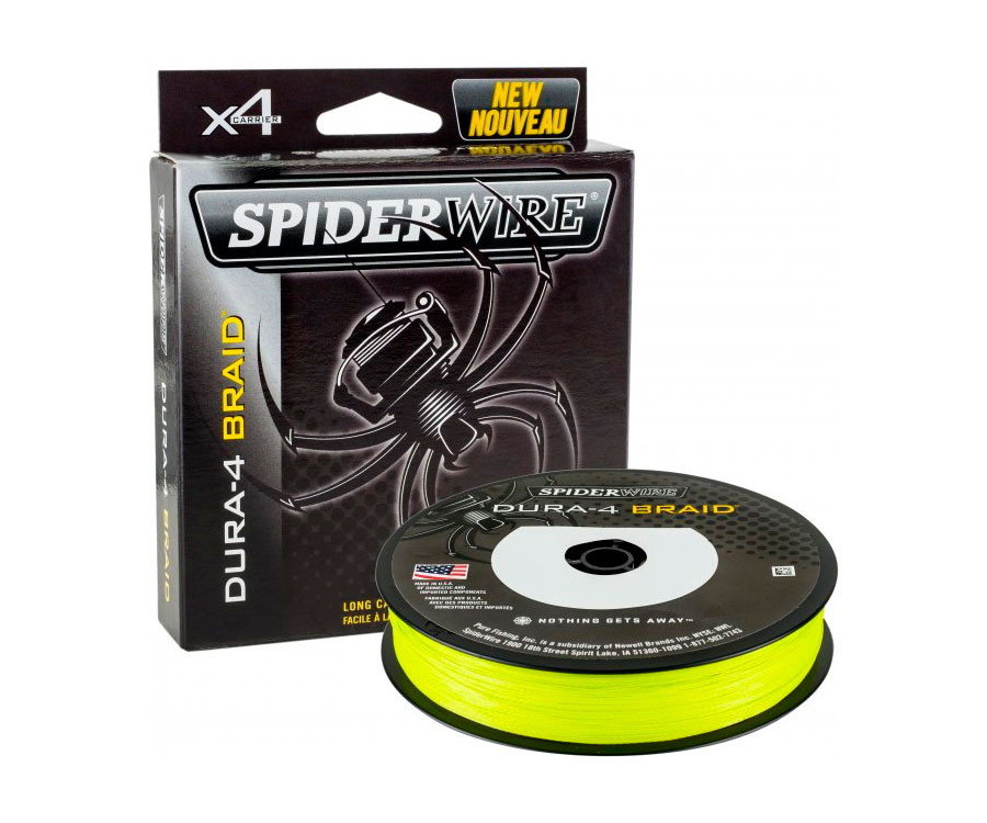 Шнур Spiderwire Dura — 4 — класична плетінка спінінга з чотирьохжильним плетінням. Зроблений з мікроволокон матеріалу Dyneema. Виробник рекомендує цю серію для ловлі великої риби. Шнур може використовуватися для риболовлі в складних умови: зарослих місцях або коряжнике. Dura — 4 відрізняється підвищеною міцністю і стійкістю до зносу. З переваг також можна виділити відсутність розтяжності і механічної пам'яті, м'якість і хороші показники закидування. Плетінка має високу чутливість. Лінійка шнурів випускається в двох розмотуваннях — 150 і 300 м. Представлено три кольори: темно-зелений, яскраво-жовтий і білий.