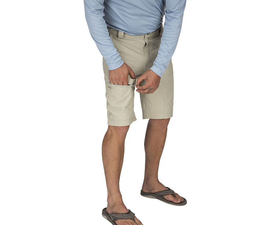 Шорти Simms Guide Short - класичні чоловічі шорти в універсальному фасоні для всіх типів чоловічої фігури. Еластичний пояс для мобільності і комфорту. Одна кишеню на блискавці для безпечного зберігання дрібних речей.