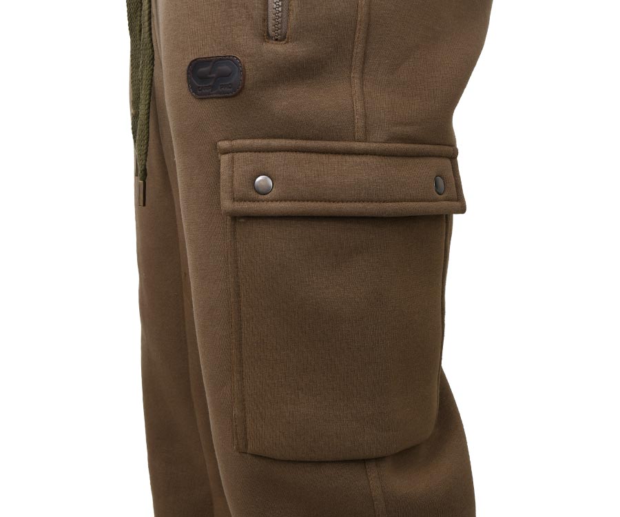 Штани Carp Pro Footer Joggers Olive – легкі, практичні і дуже зручні трикотажні штани-джогери оливкового кольору, які ідеально підійдуть для риболовлі, кемпінгу, активного відпочинку на природі чи повсякденного носіння. Виріб пошито в стилі Joggers із футеру тринитки з начосом – гладкої зовні, м’якої і приємної на дотик із внутрішньої сторони тканини – завдяки чому CP Footer Joggers є надзвичайно комфортними в носінні. Легкий дихаючий матеріал запобігає утворенню поту та чудово зберігає тепло. Штани Carp Pro Footer Joggers мають дві бічні кишені на блискавках, дві великі накладні кишені з клапанами на стегнах, широкий пояс на резинці, утяжку на шнурку, манжети штанин з еластичним дов’язом. Їх оздоблено фірмовим логотипом Carp Pro, виготовленим зі шкіри у вигляді нашивки на лівому стегні та пулерів у замках блискавок. Такі штани сподобаються всім, хто цінує стильний вигляд разом із практичністю та комфортом. Склад: 73% бавовна, 23% поліестер, 4% еластан.