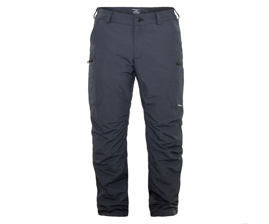 Штани виготовлені з неймовірно зносостійкого нейлону Gelanots. Цей матеріал створений за принципом безпорової мембрани - "дихає", відводить вологу від тіла та перешкоджає проникненню вологи ззовні. Водовідштовхувальне просочення Super Durable Water Re-pellent (S-DWR) вводиться в структуру тканини в момент її виробництва, а не наноситися поверх. Завдяки таким властивостям штани можна спокійно прати у машинці.