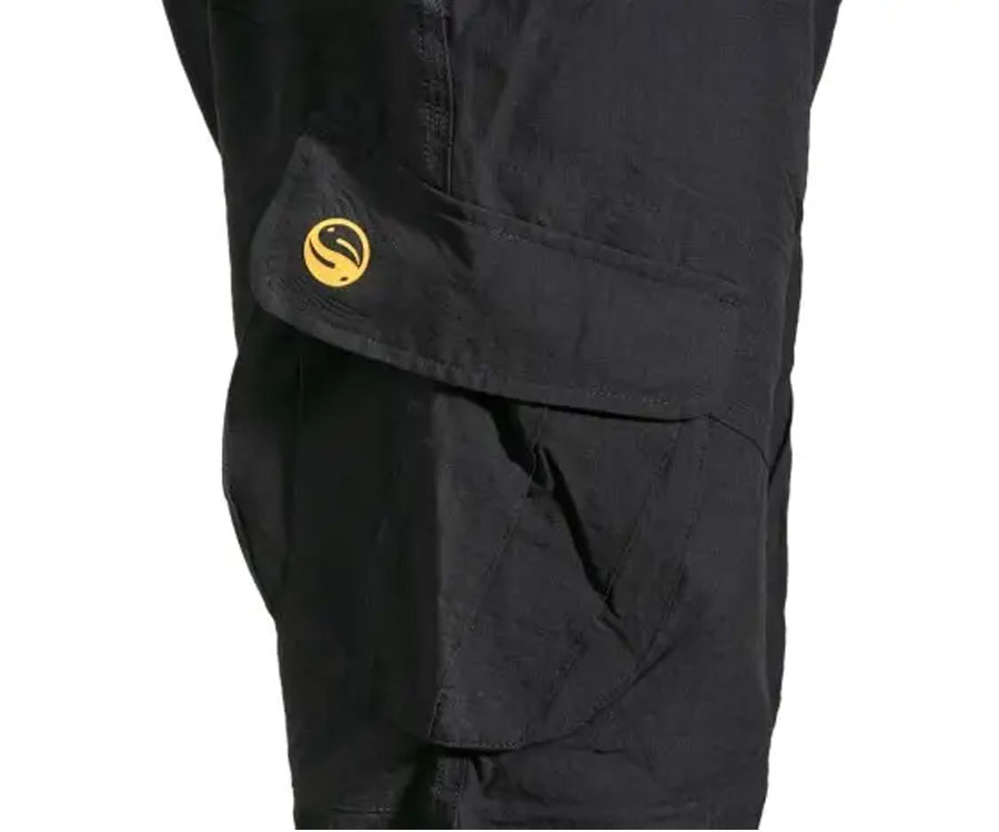 Guru Polar Match Kombats штани утеплені, чорні призначені для використання при низьких температурах і забезпечують тепло навіть у найекстремальніших умовах. Зовнішня частина виконана з водонепроникної дихаючої тканини ріпстоп у поєднанні з підкладкою із флісу щільністю 120 г/м², яка дуже тепла та зручна і не прилипає до шкіри, допомагаючи відводити вологу. Вони застібаються на гудзик і ширинку-блискавку, а також мають пряжки з обох боків для ідеальної посадки — петлі для ременя. Також є кишені, і їх дев'ять, по дві з кожного боку — одна на блискавці, інша відкрита — плюс велика липучка застібається збоку на кожній штанині та ззаду, кишеня в кишені для зберігання — щоб ви могли легко все знаходити і щоб нічого не випадало у час риболовлі.