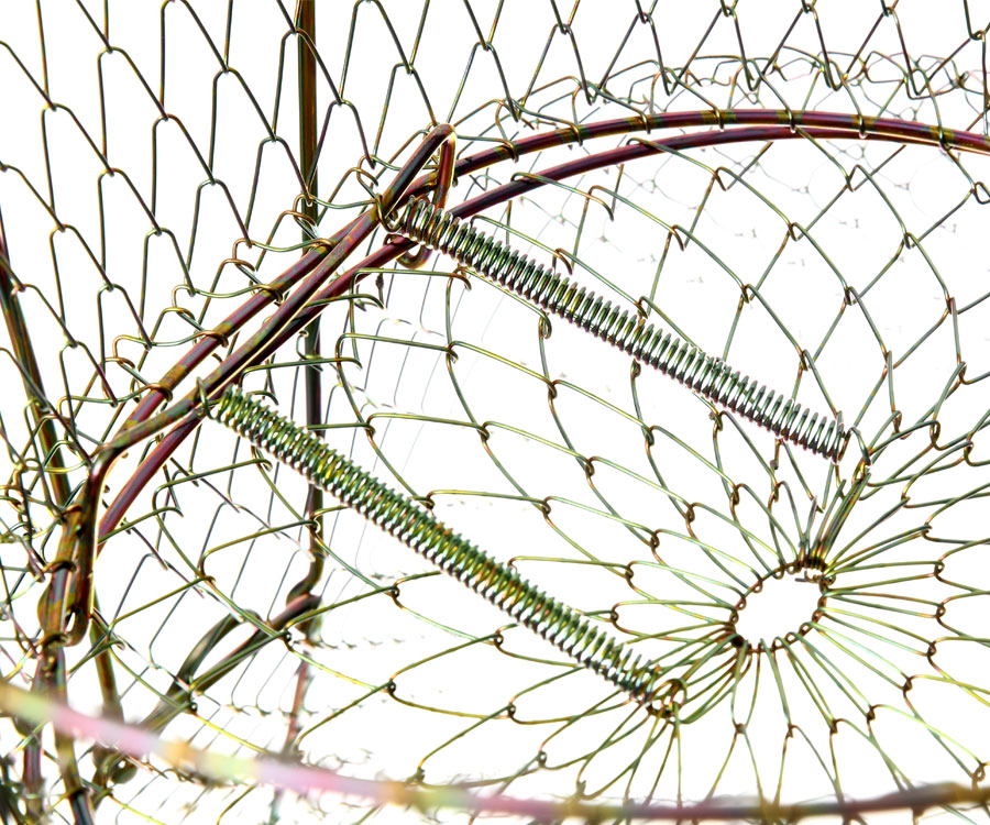 Складаний дротяний садок з опорними дугами, що вирізняється високою надійністю, компактними транспортувальними розмірами і призначений для любительської риболовлі. Для утримання форми садок обладнано складаними опорними дугами, які надійно фіксуються в робочому стані. Садок має дві підпружинені кришки: зверху – для завантаження улову, знизу – для його виймання. Аби під час завантаження риба не вислизнула, модель обладнано високою горловиною. Для кріплення і перенесення передбачено металеву ручку. Розміри: 45х33 см.