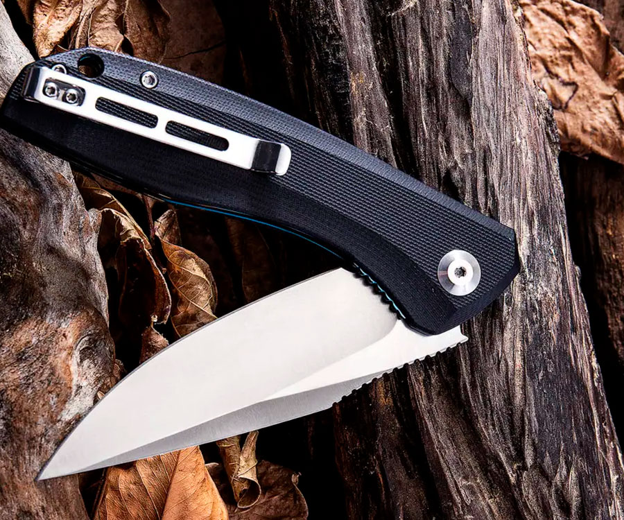 Складаний ніж Civivi Baklash C801C – зручний і міцний кишеньковий інструмент для щоденного використання. Має широкий підпальцевий упор для комфортного захоплення і утримання. Ніж довгий, тонкий, має досить легку вагу. Кулькові підшипники сприяють простому і швидкому відкриванню та закриванню леза. Механізм замка – Liner Lock, тобто коли ви користуєтеся ножем, ваші пальці в безпеці. Форма леза – drop point. Вона дуже ефективна як для нарізання, так і для наколювання. Клинок виготовлено зі сталі марки 9Cr18MoV. Особливість сплаву – високий вміст хрому, завдяки чому в нього хороші протикорозійні властивості. Сталь є копією 440B, додатково легована молібденом і ванадієм. Твердість клинка Civivi Baklash Baklash C801C досягає 60 одиниць за шкалою Роквелла, що є досить високим показником для ножової продукції. Рукоять виготовлено зі склотекстоліту G10: міцного та легкого матеріалу зі скловолокна й синтетичної смоли. Легка текстура чудово лежить у руці й забезпечує достатній захват. Ніж обладнано кліпсою – щоб його можна було підвісити на кишені, рюкзаку, прикріпити до пояса.