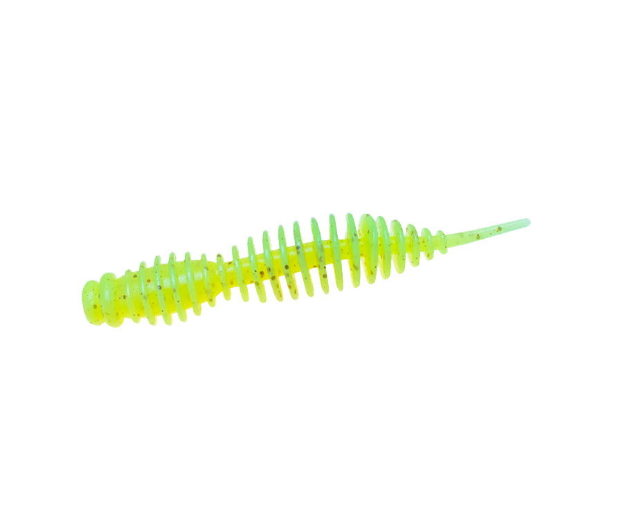Широкі ребра при тонкому тілі роблять Air Worm дуже рухливим у воді. На різних стилях анімації приманка виглядає дуже жваво та апетитно для риби. Навіть на коротких ривках в придонній зоні слаг звивається всім тілом і має коливання тонкого хвостика. А на рівномірній проводці все тіло йде змійкою і дуже помітно трясе хвостом. Це можна бачити коли ми робимо оберт катушкою та розганяємо приманку в класичній проводці “два оберти-стоп”. Така тряска приманки додатково провокує рибу на атаку.