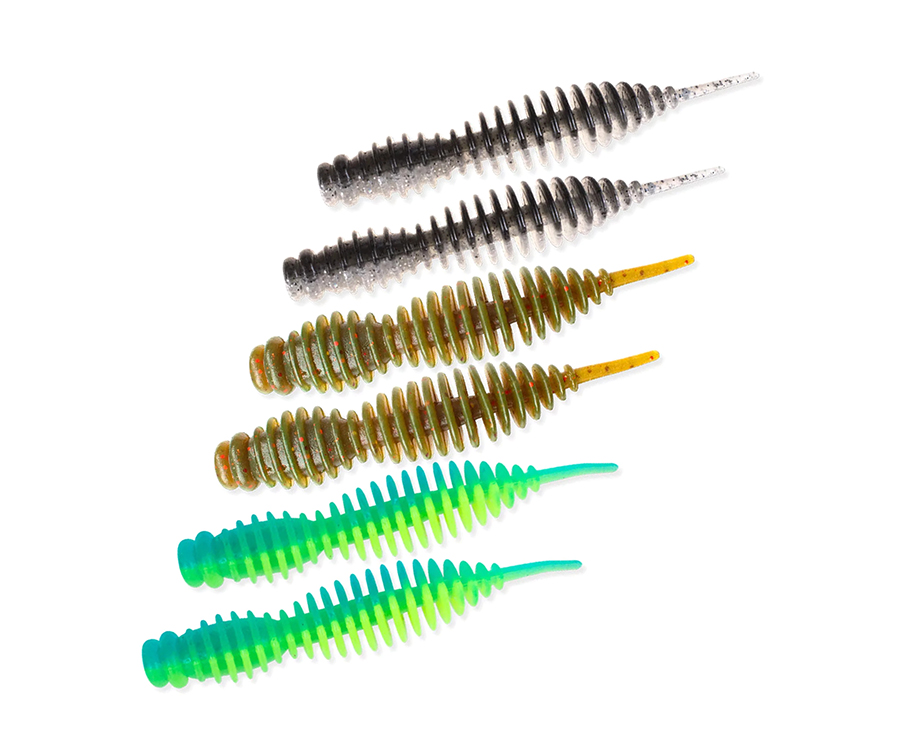 Матеріал дуже м’який, і кожен колір доводиться до “еталонної м’якості”, за якої досягається "супер рухливість", але ще забезпечується “живучість” приманки.