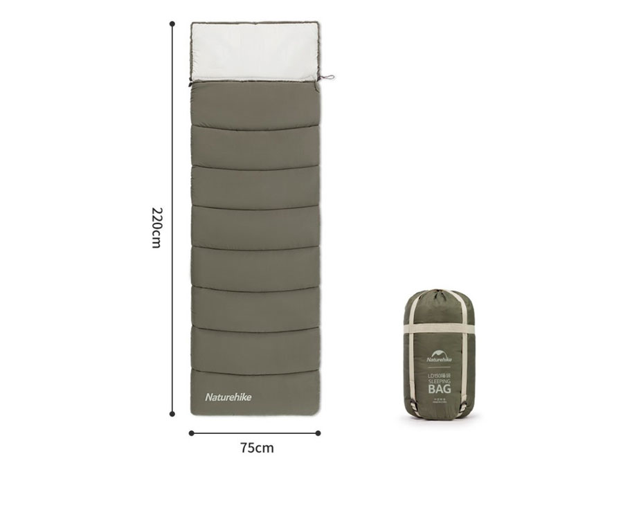 Спальник із капюшоном Naturehike LD250 CNK2300SD016 підійде для любителів кемпінгу, військових і туристів, включно з любителями відпочивати наодинці та прихильниками сімейного дозвілля на відкритому повітрі. Якщо потрібно збільшити внутрішній простір для сну, ви можете з'єднати спальник з аналогічною моделлю, яку оснащено застібкою-блискавкою з протилежного боку. Подвійний бігунок дає змогу застібати виріб як зовні, так і зсередини. Спальник Naturehike LD250 виготовлено з епонжу з оксамитовою підкладкою. М'яка підкладка з оксамитової тканини підвищує комфорт експлуатації: матеріал не подразнює шкіру, огортаючи тіло приємною м'якістю. У якості наповнювача використано порожнисту бавовну. Вона чудово зберігає природне тепло всередині спального мішка, захищаючи відпочиваючого від переохолодження в разі зниження температури повітря до позначки 2°C. Модель розкладається до розмірів 225х75 см. Подушка-капюшон з'єднується зі спальником за допомогою застібки-блискавки. Виріб важить 1,6 кг, компактно згортається в рулон 25х37 см і фіксується за допомогою стяжок.