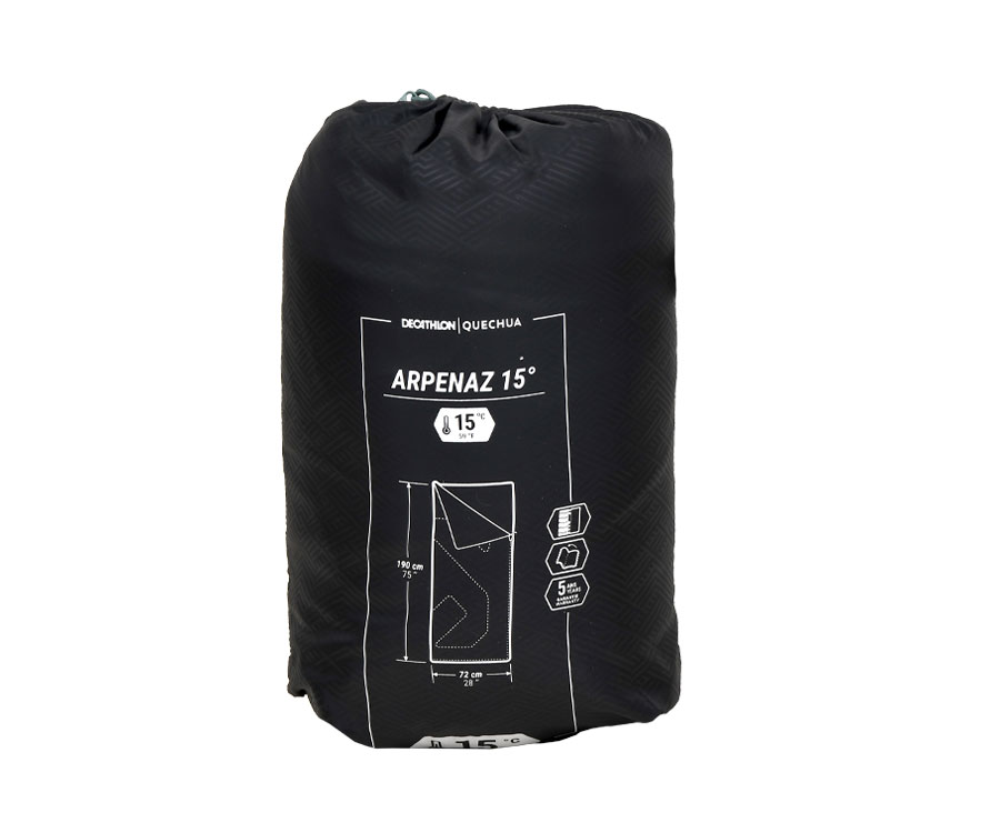Quechua Arpenaz 15 – літній спальний мішок-ковдра для кемпінгу. Розроблено для комфортного сну за температури близької до 15°C. Спальний мішок Quechua Arpenaz обладнано надійною двосторонньою блискавкою. За її повного відкриття спальник трансформується у ковдру. Можна прати у пральній машині.