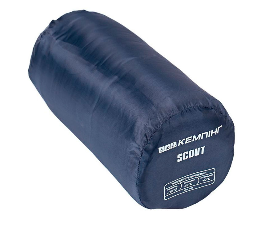 Спальник Кемпінг Scout – спальний мішок-ковдра для теплої пори року. Це простий у використанні та дуже зручний спальник для риболовлі, полювання чи ночівлі в туристичному поході. Зовнішній матеріал – високоякісний водостійкий поліестер 170D. Повністю розстебнутий спальник перетворюється на укривало. Можна з’єднати два спальники в один великий за допомогою двосторонньої блискавки. Спальний мішок Кемпінг Scout займає мало місця в складеному стані. Комплектація: спальний мішок Кемпінг Scout + компресійний мішок.