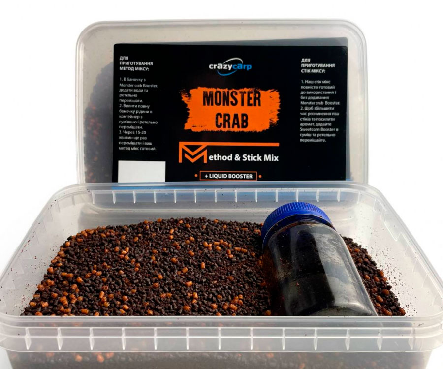 Monster Crab: Method & Stick Mix - тисячі риб по всьому світу, були спіймані за допомогою аромату монстер краб. Цей метод & стік мікс допоможе вам в будь-якій ситуації, особоливо при ловлі трофейного коропа на річках та озерах.