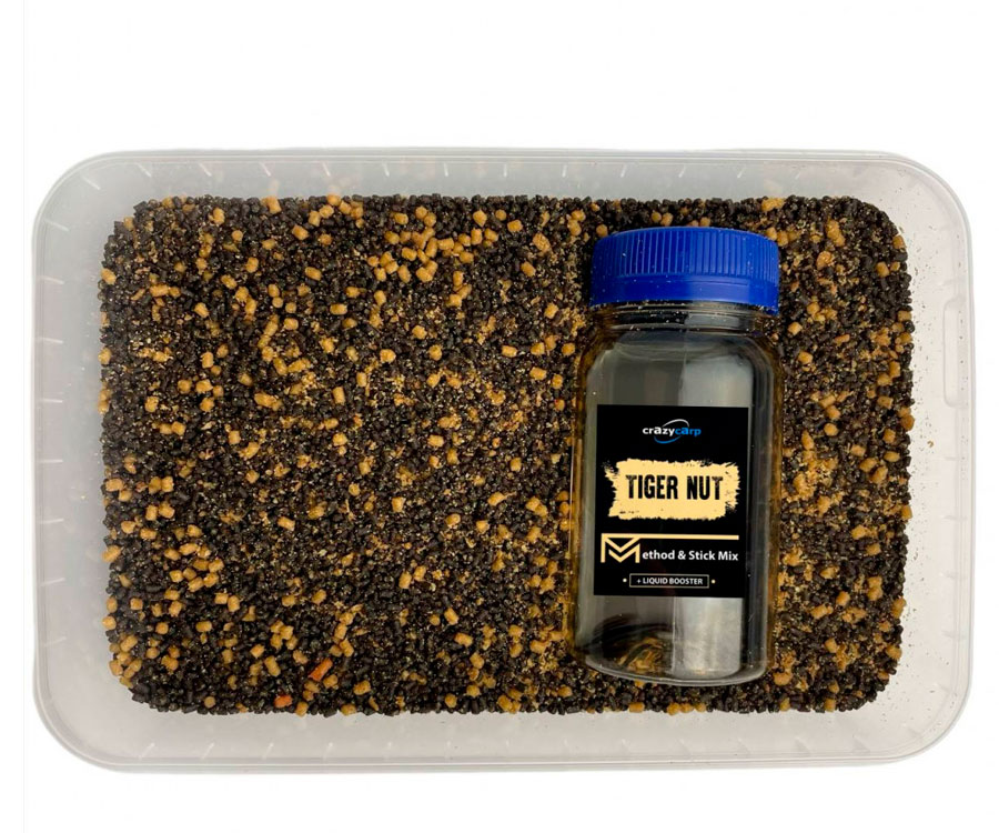 Tiger Nuts: Method & Stick Mix - фантастичний метод & стік мікс для ловлі коропа та амура, який має привабливий аромат тигрового горіха. Ця суміш особливо ефективна ранньою весною, та коли в вашому спод міксі присутній тигровий горіх і конопля.