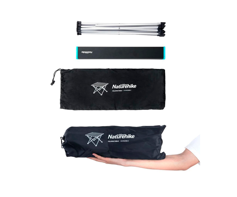 Стіл Naturehike NH19Z008-Z має складну конструкцію. У його виробництві використано алюмінієвий сплав, який відрізняється легкістю і стійкістю до зносу, дозволяючи столу витримувати навантаження до 25 кг. Крім того, алюміній не сприйнятливий до появи іржі і невимогливий у догляді — після використання досить протерти стільницю чистою ганчіркою, щоб усунути краплі жиру і рідини з металевої поверхні.
