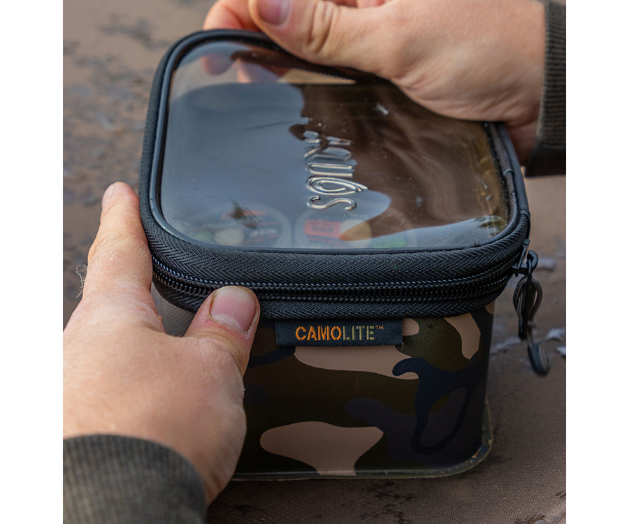 Fox Aquos Camo Accessory Bags – серія міцних водонепроникних сумок із EVA. Сумки Aquos Camo Accessory Bags ідеально підійдуть для зберігання невеликих складових рибальських оснасток і монтажів, витратних матеріалів, ПВА-пакетів, грузил тощо. Виготовляються у трьох розмірах: S (CEV005) – 14,5x9x7 см, M (CEV006) – 15x13,5x7 см, L (CEV007) – 31,5x9,5x7 см.