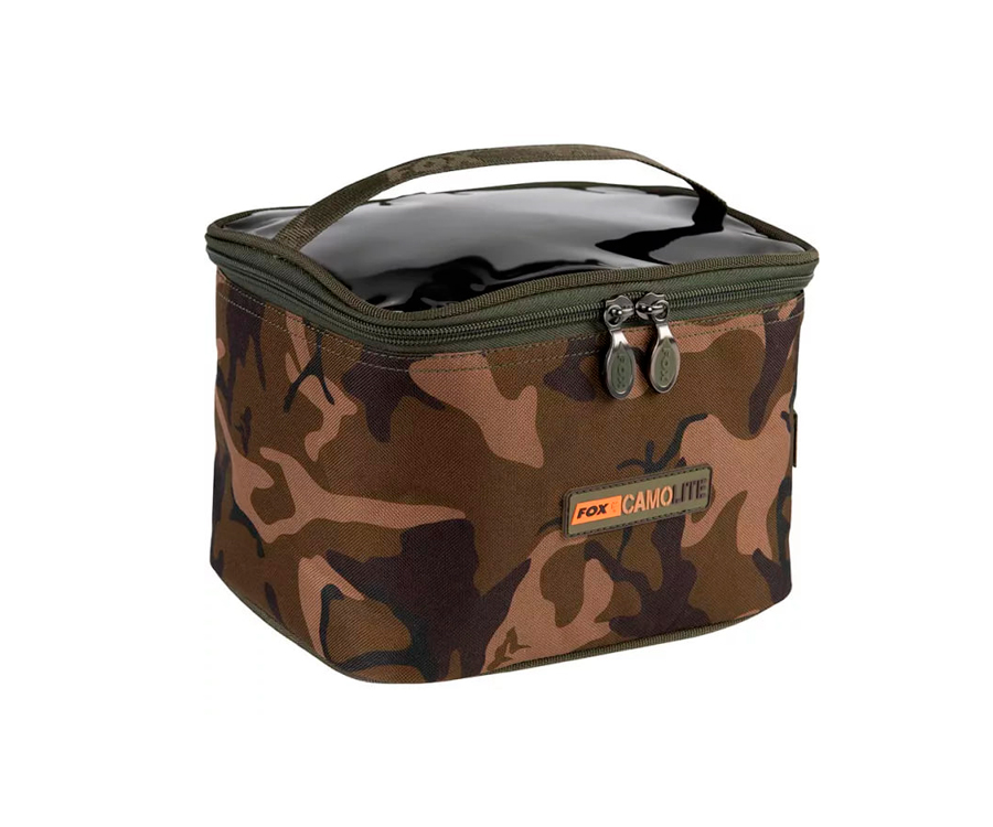Сумка для зберігання і перенесення аксесуарів Fox Camolite XL ідеально підходить для тривалого зберігання і транспортування всіх видів снастей і приманок, які можуть бути корисними в процесі ловлі. Стилізована під інші продукти лінійки, має унікальне забарвлення Fox Camo. Надміцна подвійна блискавка, а також 100% оброблений поліестер. Має тоноване віконце на кришці для легкої ідентифікації вмісту та ручки для перенесення з поліестеру. Розмір - 26 x 19 x 17,5 см.
