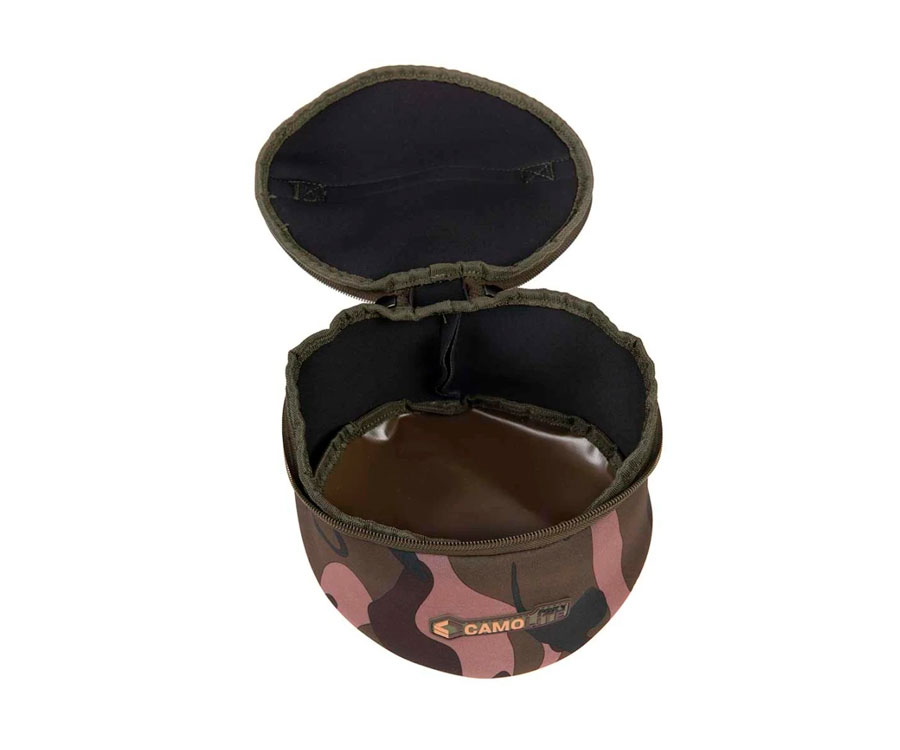 Fox CAMOLITE Neoprene Pan Set Bag відрізняється унікальним принтом Fox Camolite. Це відмінний вибір для людей, які цінують естетику та функціональність. Чохол спроектований таким чином, щоб вмістити стандартний 3-частинний або більший 4-частинний набір посуду Fox Cookset. Завдяки цьому ви можете бути впевнені, що весь ваш посуд матиме своє місце.