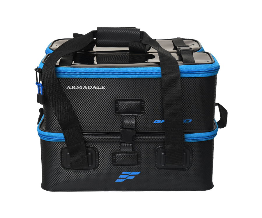 Flagman Armadale Grand Carryall Bag EVA – легка водонепроникна сумка для зберігання і транспортування риболовного спорядження, що складається з трьох окремих ємностей, об'єднаних у єдину конструкцію за допомогою застібок фастекс. Сумку Flagman Armadale Grand Carryall Bag виготовлено з преміального міцного матеріалу EVA з підвищеною щільністю і спеціальною армуючою структурою. Модель має три місткі відділення-ємності, у яких можна розмістити все необхідне спорядження та аксесуари для успішної риболовлі. Дві верхні ємності закриваються прозорими кришками на двосторонніх блискавках, нижня – закривається щільною жорсткою кришкою на двосторонній блискавці та може слугувати невеликим монтажним столиком. Сумку обладнано міцними ручками для перенесення та регульованим наплічним ременем із м'якою накладкою. Як і більшість висококласних виробів із EVA Armadale Grand Carryall Bag легко очищається від забруднень, не пропускає воду, не накопичує запахів, зручна в зберіганні та транспортуванні. Сумка для фідерного спорядження Armadale Grand Carryall Bag EVA допоможе швидко й легко доставити ваше рибальське приладдя до місця риболовлі, а також надійно захистить вміст від води та бруду. Розміри: 39х28х28 см.