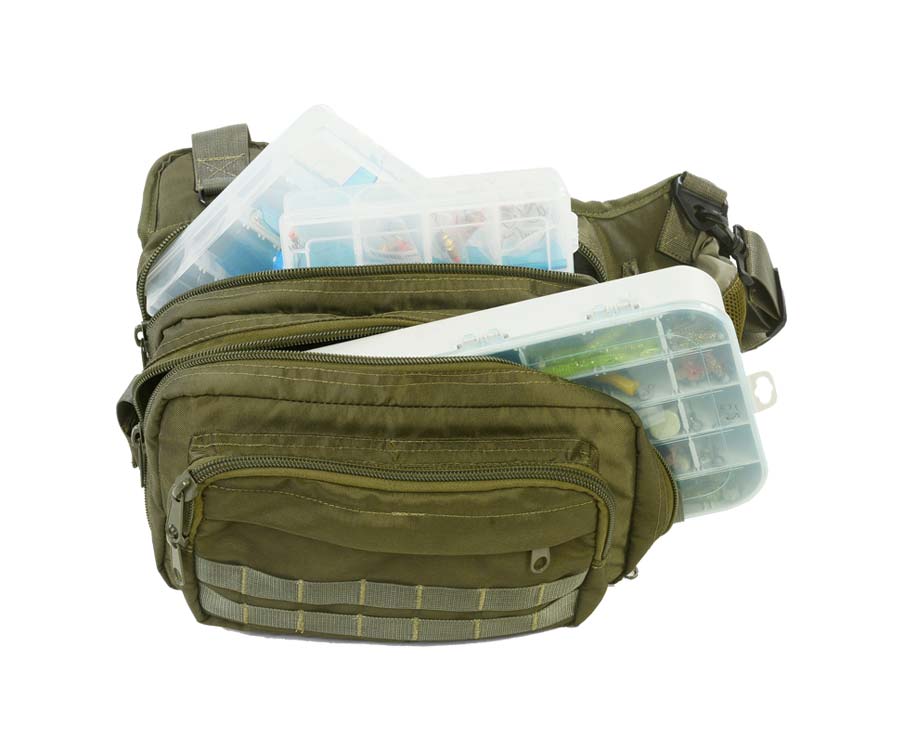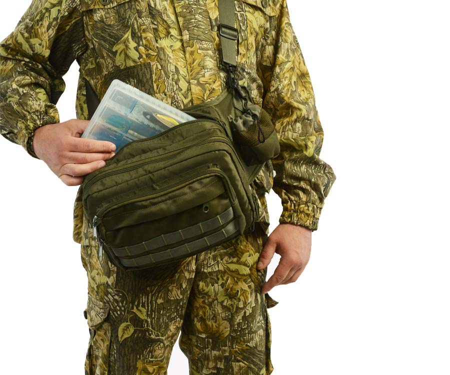 Сумка розроблена компанією «Кодор» (Україна), призначена для перенесення коробок, котушок, насадок та інших рибальських аксесуарів. Виготовлена з щільного матеріалу Cordura 1200D — поліестерової тканини з особливою структурою нитки і з водовідштовхувальним просоченням. Має регульовані лямки через плече і пояс. Бічні кишені на блискавці і «липучки» для під'єднання додаткових, навісних елементів підвищують місткість сумки. Колір сумки — Olive (темно-зелений).