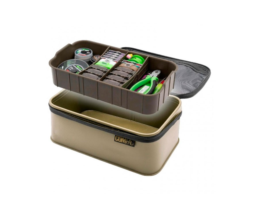 Korda Compac Organiser – сумка-органайзер зі знімним відсіком для зберігання всіх необхідних дрібниць. Сумка має основний відсік для більших предметів, таких як маркери, системи ПВА, круши, поплавці для Zig Rig тощо, а також додатковий знімний лоток зі знімними перегородками для розміщення дрібних аксесуарів і снастей першої необхідності.
